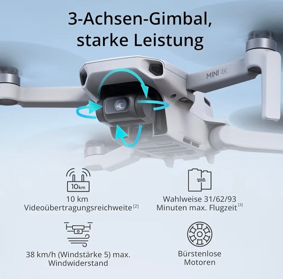 DJI Mini 4K Drohne mit 4K UHD Kamera für Erwachsene, 3Achsen-Gimbal Stabilisierung