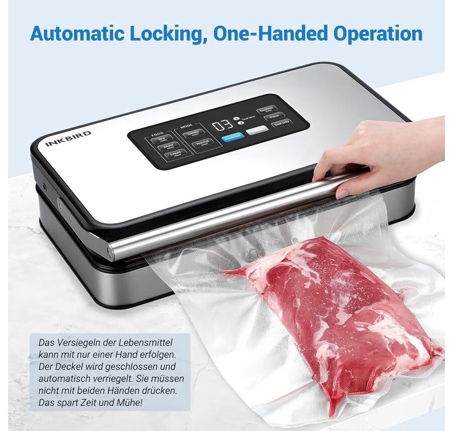 INKBIRD Vakuumiergerät, Folienschweißgeräte für Lebensmittel mit Trocken-/Nass-/Flüssigkeitsmodus,Doppelpumpe, 20L/min, geräuscharm,integrierter Schneider, Rollen und Beutel im Lieferumfang enthalten
