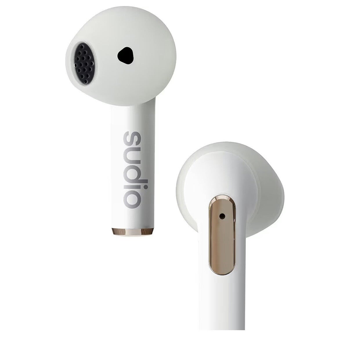 sudio N2 Snow White - True Wireless Bluetooth Open-Ear Earbuds,Multipoint-Verbindung, integriertes Mikrofon für Anrufe, 30 Stunden Akku mit Ladehülle, IPX4 wasserfest, USB-C & kabelloses Laden