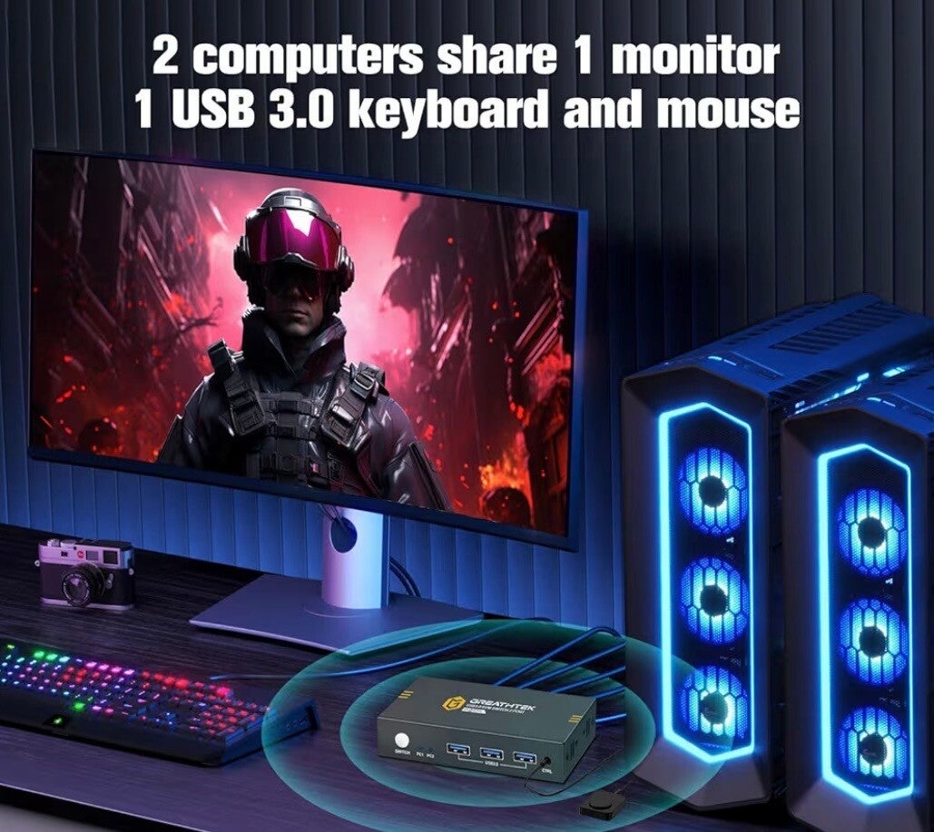 4K60Hz USB 3.0 HDMI KVM Switch 2 PC 1 Monitore, KVM-Switches für 2 Computer teilen sich 1 Satz Drucker Maus Tastatur, Mit 3 USB3.0 Ports, Inklusive 2 USB 3.0 Kabel