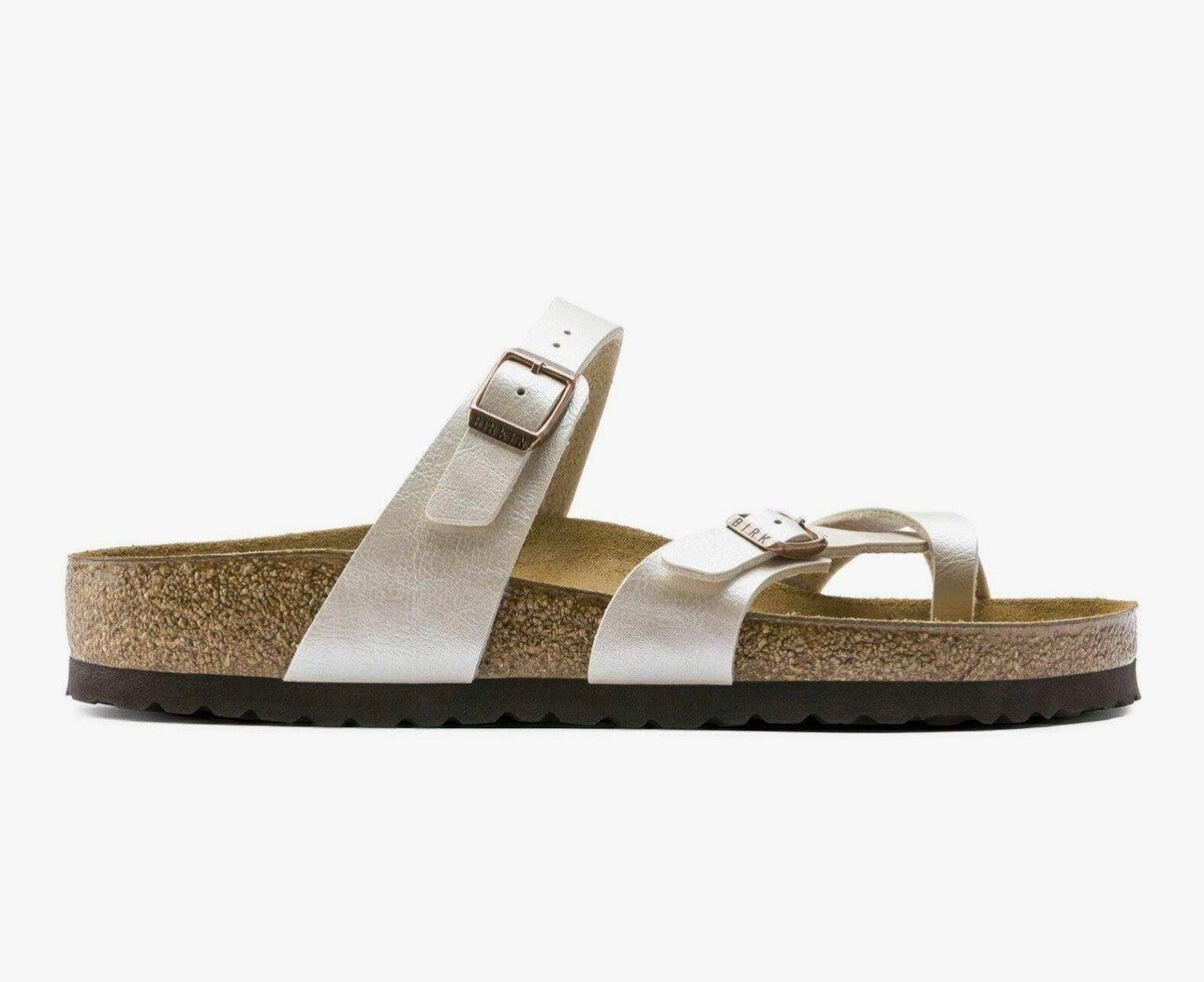 slide sandale mit verstellbaren trägern mit schnallenverschlüssen, konturierte fußbett und kork zwischensohle“