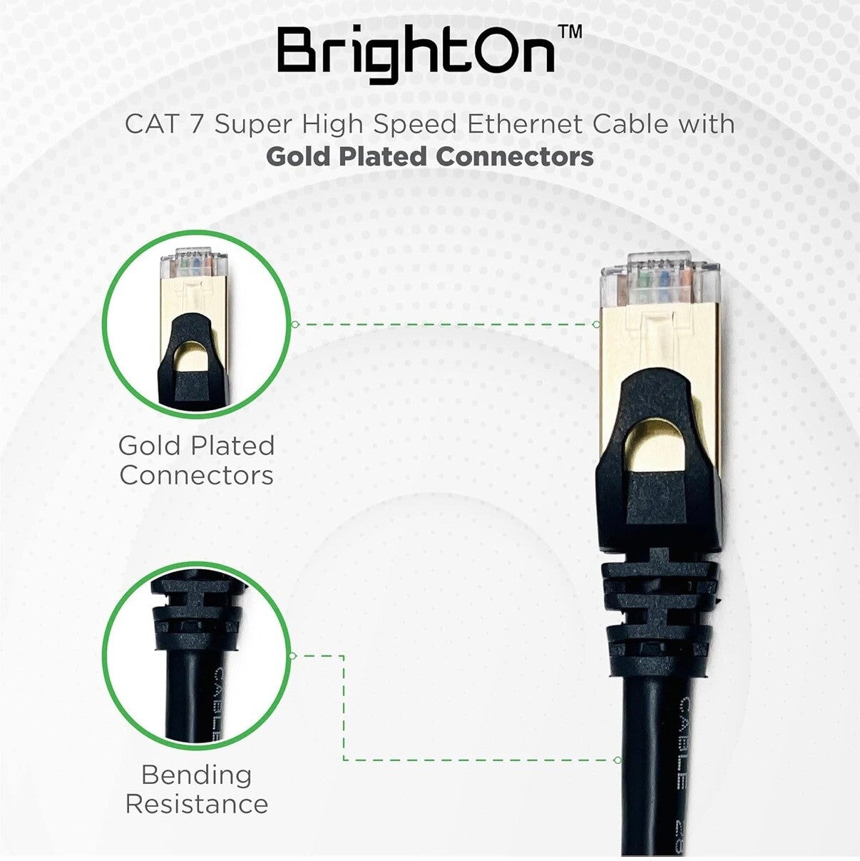 - Das BrightOn Cat 7 Ethernet-Kabel mit vergoldeten Anschlüssen bietet Ihnen die beste physische Verbindung zu Ihrem Hochgeschwindigkeits-Internetnetzwerk. Viele Heim-WLAN- und Router-Systeme können Latenzen verursachen und mit diesem Kabel verursachen Sie die geringste Verzögerung.